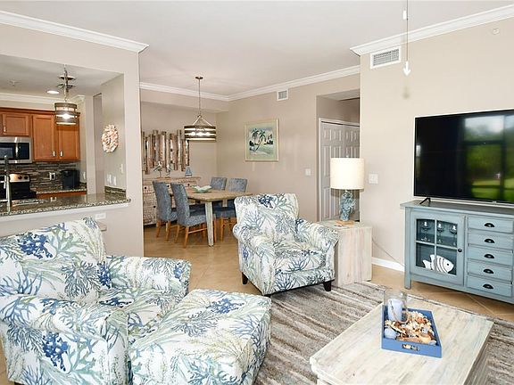 Welcome to your dream oasis a stunning 2-bedroom, 2-bathroom furnished condo located within the highly sought after and secure guard-gated community of a 27-hole Arthur Hills designed golf course. This immaculate condo has been thoughtfully updated throughout, promising a life of luxury and comfort. Step inside, and you'll immediately be captivated by the elegant ambiance created by the tasteful furnishings and modern finishes. The heart of this condo is the impressive kitchen, complete with gorgeous granite countertops and a convenient breakfast bar, perfect for enjoying casual meals or entertaining guests. Adjacent to the kitchen, a charming breakfast area awaits, ideal for savoring your morning coffee while overlooking the picturesque surroundings. For more formal gatherings, a spacious dining room provides an intimate setting to share meals with loved ones or host special occasions. The family room, bathed in natural light, offers a relaxing space to unwind and create lasting memories. One of the highlights of this condo is the screened lanai, where you can bask in the beauty of nature and enjoy the scenic views of the 7th hole of the pristine golf course. The lanai is an excellent spot to sip on a refreshing drink, read a book, or simply embrace the tranquility of the outdoors. Within the community, indulge in resort-style living with access to a dazzling pool, a true oasis on sunny days. Whether you seek to lounge poolside with a good book or take a refreshing dip, this pool area is designed for relaxation and enjoyment. Additionally, the clubhouse provides an array of amenities, fostering a sense of community and offering spaces for socializing or hosting events. And for those seeking a bit of tropical flair, a charming tiki bar adds a touch of the exotic to your leisure time. Living in this enchanting condo means having exclusive access to a haven of leisure, all while being surrounded by the lush greenery of the meticulously designed golf course. The combination of modern updates, breathtaking views, and resort-style amenities makes this furnished condo an absolute gem. Whether you're a golf enthusiast, a nature lover, or simply someone seeking a country club lifestyle, this condo has everything you could desire and more. Embrace the epitome of luxury living in this guard-gated paradise.