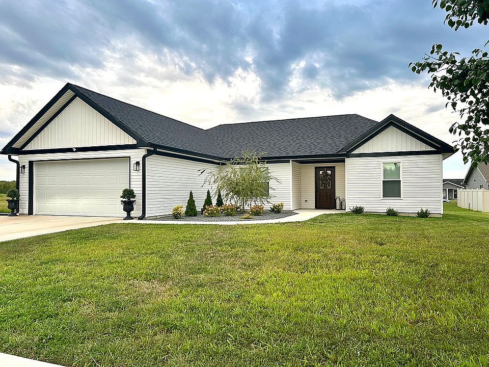 This stunning home combines modern style with comfort and functionality. Featuring stainless steel appliances and quartz countertops in the kitchen in addition to custom tile flooring in the master suite. Enjoy tall ceilings, an open floor concept, and luxury vinyl flooring throughout for a bright and spacious feel. The energy-efficient HVAC system ensures comfort year-round, while ample storage—including a massive master closet—keeps everything organized. New landscaping added last fall! With thoughtful finishes and meticulous care, this home is move-in ready and waiting for its next owner!