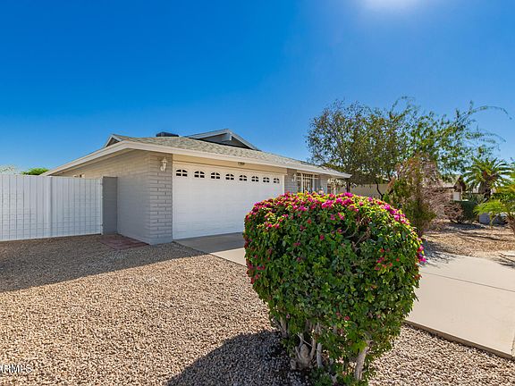 Seize the chance to own this lovely 3-bedroom home on a fully-fenced lot! You're welcomed by a 2-car garage, an RV gate, & a low-maintenance landscape. Inside, you'll find a serene living room w/ a soothing palette, blinds, & durable tile flooring. The formal dining room is perfect for hosting memorable dinner gatherings. You'll also find a dedicated family room for relaxing evenings. Cook delicious meals in the kitchen, equipped w/ quartz counters, ample wood cabinetry, recessed lighting, a tile backsplash, SS appliances, & a serving window w/ a breakfast bar. The primary bedroom boasts double walk-in closets & a private bathroom w/ dual sinks. Unwind in the charming backyard, which offers a spacious covered patio & abundant space for crafting your dream oasis. Make this gem yours!