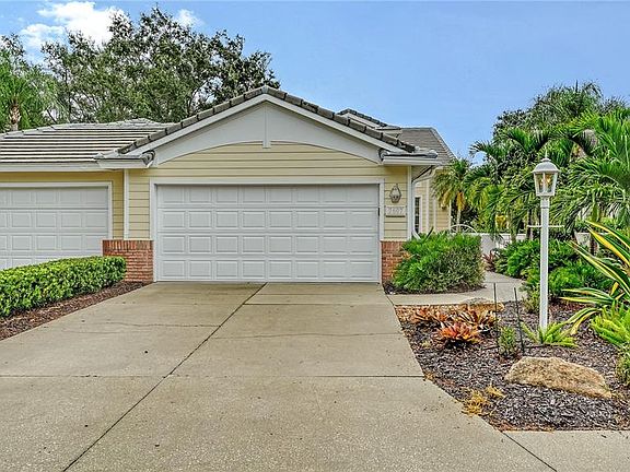 This beautifully MOVE IN READY updated and meticulously maintained Villa with spacious two car garage in the desirable Whitebridge neighborhood of University Park offers a peaceful setting with tranquil golf course views. Lots of Upgrades -- No Carpet. A private courtyard welcomes you into the home, creating the perfect spot for greeting guests or enjoying a quiet retreat outdoors. Inside, the open floor plan is filled with natural light, highlighted by volume ceilings and elegant plank tile ceramic tile floors throughout. The updated kitchen is a chef’s delight with granite countertops, stylish light cabinetry, and a sleek induction range, all opening to the spacious living and dining area, perfect for both everyday living and entertaining. Directly off the living room, the recently enclosed lanai with hurricane resistant doors and windows provides additional living space and overlooks lush, professionally designed landscaping—an ideal spot for your morning coffee or unwinding with a good book. The master suite is generous in size, featuring vaulted ceilings, a large window, spacious walk-in closet, dual-sink vanity, and walk-in shower. A split-plan layout offers privacy for guests, with a separate bedroom and bath along with a conveniently located laundry area. Thoughtful owner updates include a courtyard updated with recently sealed pavers, enclosed lanai, Dragonfly landscaping, Climate Design Trane A/C system 2023, 19-inches of attic insulation, updated electrical panel and wiring, cellular blinds throughout, and new induction range, microwave, refrigerator and dryer. The roof was replaced in 2018, ensuring peace of mind for years to come. Whitebridge Court is a maintenance-free community offering its own heated pool and a welcoming social environment. Conveniently located near the clubhouse, residents enjoy easy access to University Park Country Club’s resort-style amenities, including 27 holes of championship golf, premium tennis courts, pickleball, croquet, fitness center, social events, and dining at The Park Grill & Café (minimum social membership required).Located just minutes from downtown Sarasota, SRQ International Airport, shopping, dining, beaches, and cultural attractions, this Villa combines modern updates, timeless style, and a premier location for the ultimate Florida lifestyle. Furniture available under separate contract. Personal art excluded. Inventory list will be provided. Improvement expenditures of $60,417. Attachment included. Outdoor furniture is in storage in garage. Please Submit on FAR BAR contract with proof of funds.