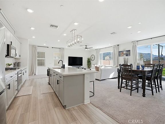 EXCEPTIONAL TWO-STORY HOME - MODERN UPGRADES AND INVESTMENT POTENTIAL: Stunning two-story residence offers an impressive (6) bdrm, (4) bath, encompassing more than 3,000 sq. ft. of meticulously upgraded living space. Open-concept floor plan, the home features elevated ceilings and a bright, welcoming great room that seamlessly connects to a chef’s kitchen. The kitchen, thoughtfully appointed with upgraded soft close and pull-out cabinetry, elegant quartz countertops, designer backsplash, and a spacious 10-ft center island; is ideal for entertaining or family gatherings. FLEXIBLE LIVING SPACE: The main level has a versatile guest bedroom, currently utilized as a home gym, along with a guest bath. Additionally, the home has a generous Next-Gen suite, complete with its own bathroom, a sizable closet, and kitchenette potential; the in-room cabinetry allows for the integration of a small refrigerator, microwave, or other appliances, making it perfect for multi-generational living or extended guest stays. UPSTAIRS COMFORT: The upper level opens to a spacious loft or family room, four additional bedrooms, a full bath, and a luxurious primary suite. The primary retreat is highlighted by a huge walk-in closet and ample storage options. The home has upgraded luxury vinyl plank (LVP) flooring and plush carpeting throughout. OUTDOOR OASIS: Step outside to enjoy over 7,000 sq, ft. of outdoor living, framed by breathtaking mountain views. The backyard is landscaped with concrete patio, pathways, a turf lawn, and ambient lighting—making it perfect for barbecues, children’s play, or future enhancements such as a pool or (ADU) for additional income potential. MODERN AMENITIES AND ECO-FRIENDLY FEATURES: Designed for sustainability and convenience, features solar energy (buyer to assume), EV/Tesla charging capabilities, tankless water heater, a whole-home filtration/soft-water system, and integrated Wi-Fi access points. These features provide year-round comfort and energy savings. PRIME LOCATION: Minutes from downtown Riverside, University of California Riverside (UCR), Loma Linda Hospital, and Redlands, this property provides easy access to I-10, I-215, I-60, and I-91. Residents enjoy effortless commuting, fine dining, shopping, and all that SoCal living has to offer. BUYER INCENTIVES: Home qualifies for a $20,000 GRANT, Please call for details !
