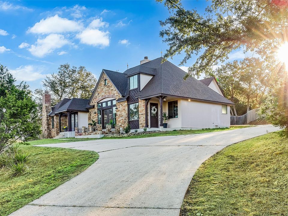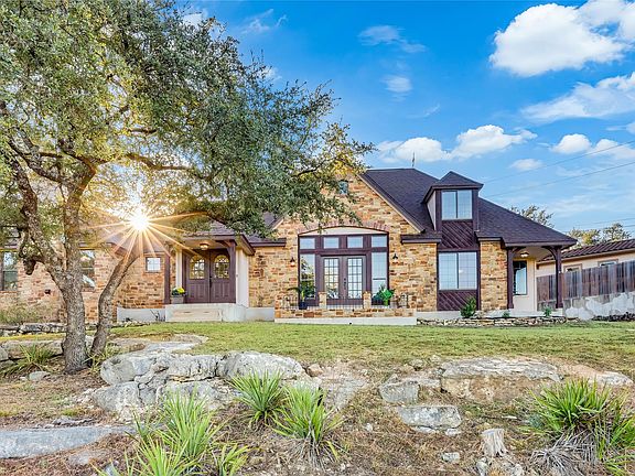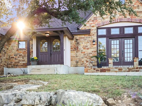 French-inspired elegance meets family-friendly comfort in this custom-designed home, perfectly positioned on a terraced lot with sweeping Hill Country views. Designed with gathering in mind, the spacious kitchen invites everyone to be part of mealtime prep, flowing easily into a welcoming living area. Two primary suites—one featuring a cozy fireplace—offer flexibility and privacy, while three additional upstairs bedrooms provide ample space for family or guests. An oversized garage includes a dedicated area perfect for a woodshop or hobby space. Outside, enjoy the sparkling pool and spa set against the backdrop of the Texas Hill Country, creating your own private retreat.