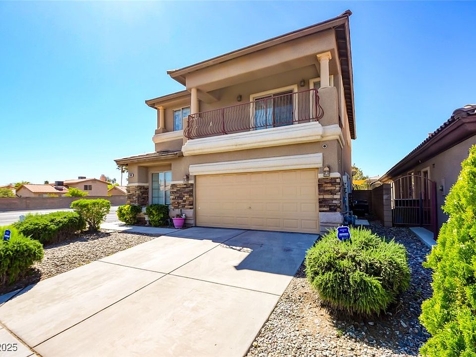 Stunning 5-bedroom, 3-bath home with a 2-car garage in a prime location near shopping and freeway access! This beautifully maintained property features a spacious kitchen with breakfast nook, formal dining room, separate family room, and a cozy gas fireplace in the living room. The master suite offers a private covered balcony with breathtaking mountain views. Enjoy low-maintenance desert landscaping, stylish tile and vinyl flooring, and all appliances included. Ideal for families or those who love to entertain. Don’t miss your chance: schedule a private tour of your future home today!