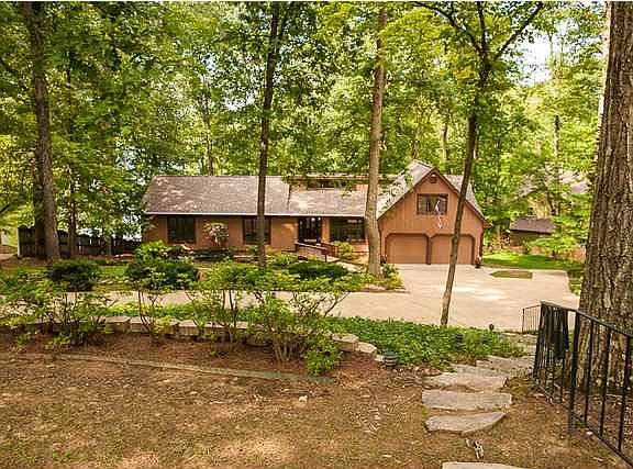 Get ready to make this home your own, then sit back in the deck swing and relax in this tranquil lakeside setting. This home's private stone path and gently curving driveway welcome you to the front door in this beautiful woodland setting. Located in Ooltewah, TN on Wolftever Creek (a branch of Lake Chickamauga) and Rogers Branch, this home offers a private stationary dock with boat lift, a floating dock and a boat ramp. The community pool, boat ramp and tennis courts add to the charm of this water front neighborhood. Nestled on a partially wooded lot, the semi-secluded home beckons you to enjoy the outdoors. This beautiful home has expansive windows that bring the outdoors in and fill it with light. It features a third garage which could be used as a workshop, a den/family room with a wood burning fireplace, a vaulted living room with a gas fireplace, a dining room with parquet floors and a huge bonus room just above the living room. The functional kitchen has ample cabinet and counter space. The master suite is spacious with a walk-in closet and the master bath features a jetted tub surrounded by picture windows that frame the view, and a separate tiled shower. Two of the additional bedrooms share a Jack and Jill bath, while the third offers a separate bath making it the perfect guest suite. Additional features include a security system and it is plumbed for a central vacuum. Enjoy the benefits of a family friendly neighborhood with a resort ambiance. Call today.