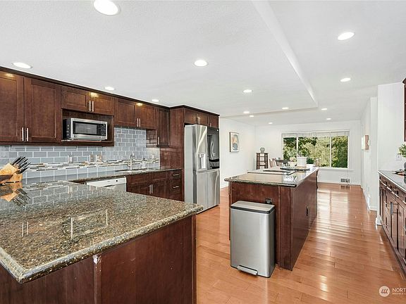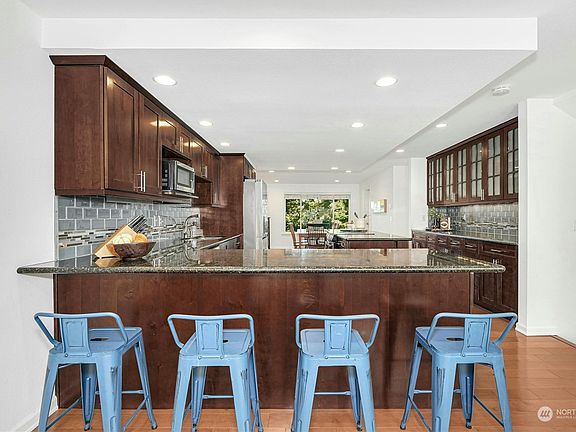 In the heart of MI's vibrant Town Center, this rare townhome offers comforts of a single-family home w/ the easy living of a condo. Lovingly cared for w/ stylish upgrades - Move in ready! Open, light-filled layout lives large w/ roomy living & dining areas flowing around a grand island-style kitchen. Slab granite surfaces, stainless appliances & cabinets galore. Barbeque on the back patio, or head down for movie night in the grand rec room. All three bedrooms are tucked upstairs together & offer vaulted ceilings. Your owner’s suite-a retreat w/ a cozy wood stove, private balcony, sumptuous bath & dream walk-in closet w/ custom organizers. This well-maintained & landscaped community also boasts an outdoor pool just steps from your back door!