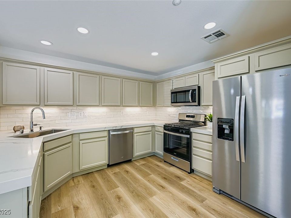 Welcome to this Georgeous home with plenty of natural lighting ready for you to enjoy with family, friends or simply relax because all the work has already been done. Fully profecionally remodeled with high-end finishes. New luxury flooring, fresh paint, updated lighting & ceiling fans throughout. Living area flows seamlessly into a modern chef's kitchen featuring quartz countertops with a sleek backsplash, custom cabinetry with under cabinet lighting, new stainless steel appliances and a huge pantry. The primary suite offers state of the art curbless walk-in shower, upgraded vanity & stylish finishes. Two spacious additional bedrooms. Enjoy your low maintenance backyard. Fully finished garage with epoxy flooring and HOA community with great curb appeal, enjoy the community amenities like a sparking pool, Gym, lush parks, basketball court & more. Located just minutes from shopping, dining, schools and freeway access, this property offers both style and convenience.