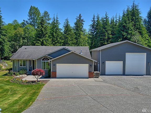 This home has it all... Beautiful rambler on 5 landscaped acres, a shop, outbuildings with a river front & mountain view. Well maintained home with an open floor plan, vaulted ceilings & a master with French doors going out to stunning deck. With 3 bedrooms & 2 full baths you have everything you need inside, and the exterior is gorgeous. Raised gardens, wide trails to the river, aggregate drive to keep everything clean. Huge shop large enough for motorhome and additional vehicles or storage.