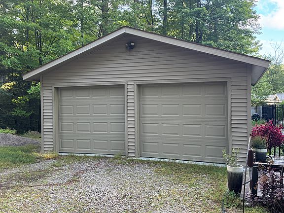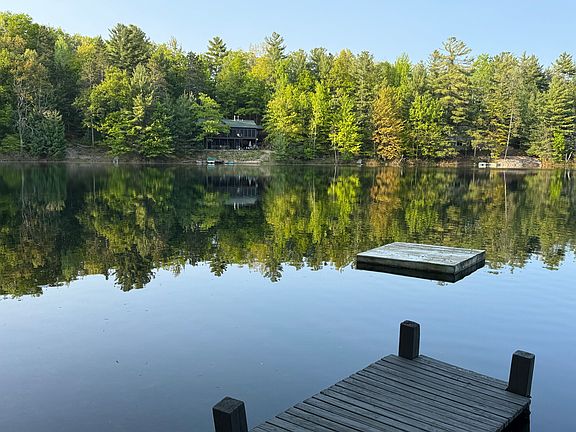 Charming, fully furnished cabin with 2-car garage on George Lake with stunning views of the water. Gas fireplace, mini-split in bedroom, ceiling fans and beautiful landscaping.