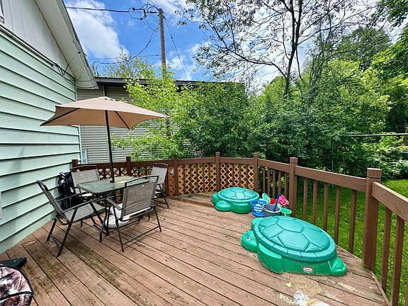 Adorable city home tucked in the trees. This property offers a three bedroom, one bathroom home with a detached two car garage and extra large fenced in back yard for ultimate privacy. The enclosed porch is perfect for morning coffee and leads in to the centrally-located dining room with vinyl floors. Off of the dining room is the living room offering amazing natural sunlight. There are also three bedrooms, a full bathroom, and the kitchen on the main floor. Off of the kitchen is a large sun deck. Come and see all of the potential this property has to offer!
