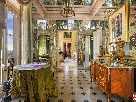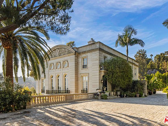 A Chateau in Bel Air where French refinement and architectural design meet Los Angeles city and ocean vistas. This magnificent estate was modeled after Le Petit Trianon in Versailles, France. The grand interior with double-height ceilings decorated with meticulously crafted moldings offers elegantly appointed formal living rooms. Just one floor below, informal quarters provide spaces to casually luxuriate after laps in the pristine pool under the California sun. And movie nights are sure to delight in the sumptuously comfortable home theater conveniently adjacent to the wine room. For those who love to entertain in grand style, this estate offers an approximately 10,000sf open air terrace complete with an outdoor kitchen, cabana room and city views. Offering 9 bedrooms and 12 bathrooms, including the guest house and maid's quarters, this home presents a truly unique opportunity. One of the most distinctive features of this estate is the 22-car garage situated directly below the open-air terrace. Live elegantly and entertain in style with the Los Angeles skyline in the background while hosting all your favorite people under one roof. Grand in every detail (including the parking)!