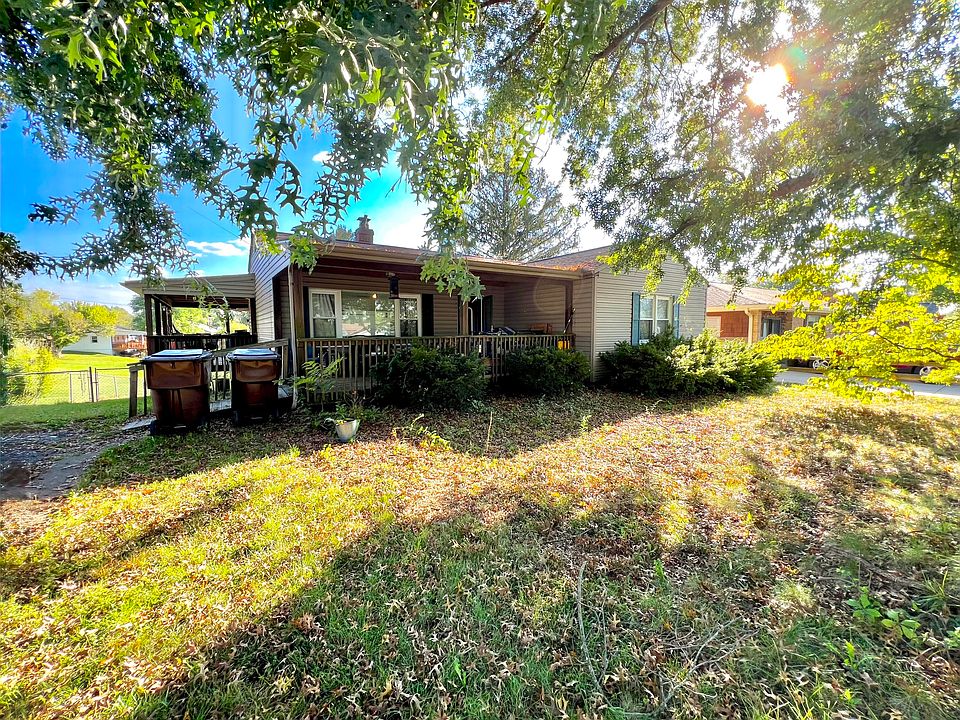 3 bedroom, 1 bath ranch with wrap around porch, great hardwood floors and fenced in yard. Covered front deck with ramp, full unfinished basement. New roof in 2025, hot water heater 2024, and newer HVAC. Hardwood floors in living room, dining room and all 3 bedrooms.