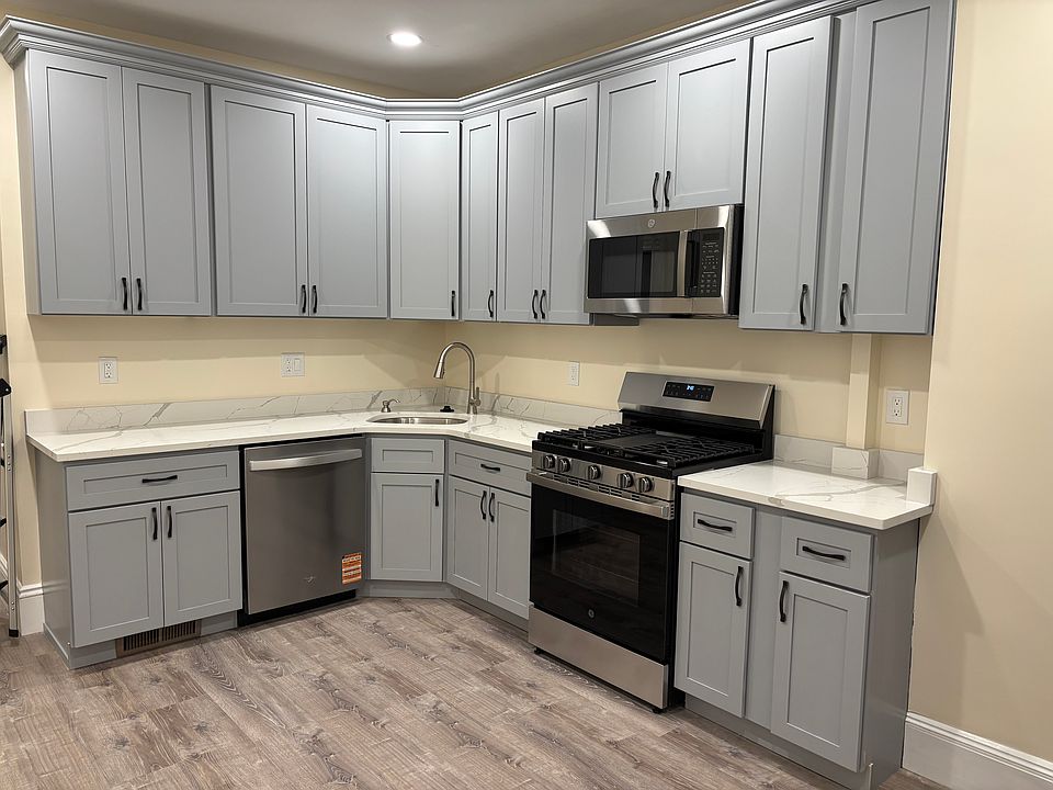 Small private rear deckBright new kitchenHardwood floorsIn unit washer dryerRecessed lightingBrand new renovationsNew flooring