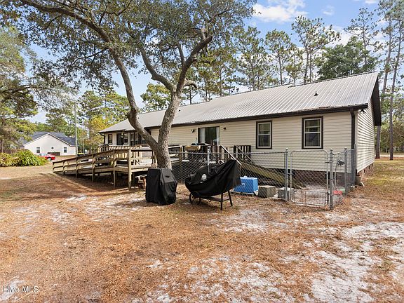 This spacious 3 bedroom, 2 bath home is located on a .48 acre, corner lot! This split floorplan offers a huge living space and open dining room, kitchen, breakfast nook, pantry, laundry room, an office or can be used for a larger pantry and storage. The home needs some cosmetic upgrades but features a metal roof (2018), 5 yr old HVAC-last maintenance 2/15/24, water softener, all newer appliances, (dryer a bit older), water heater 6 months old, windows newer, Septic 2 years old and motion sensor flood lights. Nest doorbell will remain, alarm system with ADT. Master bedroom, part of bathroom and master closet has new wood flooring. The large 439 sq ft garage offers workbench and storage and the pull down attic stairs provides lots of floored space. Outside you will find a expansive deck -28 x 15 feet with handicap access. Small fenced area perfect for your pets! Venture out to the incredible wired shed with a front door, adorable porch and double doors on the side! This home has so much privacy and Boiling Spring Lakes has a community center, basketball, playground, Spring Lake Park with concerts and activities and is close to Southport and Oak Island. Check it out today! Property is being sold in it's present condition, no repairs to be made.