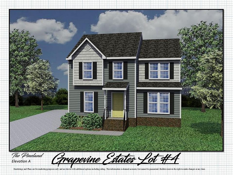 Brand New Design, THE PINELAND, is now UNDER CONSTRUCTION on this beautiful 5 PLUS ACRE HOMESITE in Grapevine Estates. What a convenient location close to Interstate, Airport, Shopping, Etc., yet offers that Country Appeal. The Pineland features a Open and Bright Great Room, Sunny Kitchen and Breakfast Nook with Upgraded Stainless Steel Appliances, and 36" Wall Cabinets. The FIRST FLOOR OWNER'S SUITE features a very nice Walk In Closet and Full Private Bath. The Second Floor offers 3 additional bedrooms, each with a Walk In Closet, and a Full Hall Bath, and Separate Laundry Room. Great Design, Great Location, Great Price on this Brand New Liberty Home!