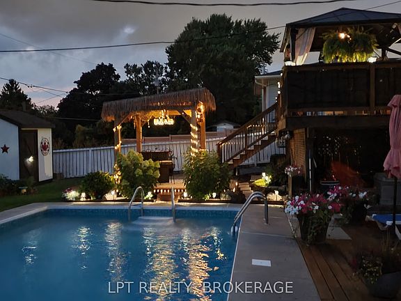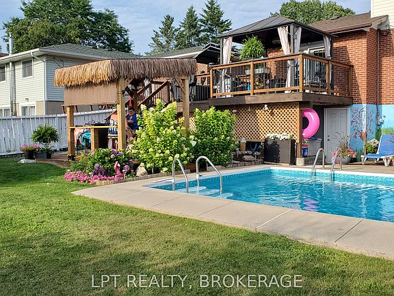 Discover your dream home in Kingston's coveted west end-a stylish and desirable 4-bedroom, 2.5-bathroom, two-storey home that exudes both class and comfort. Step inside to find an inviting main floor where natural light streams through oversized windows, highlighting elegant finishes and an open layout ideal for everyday living and entertaining.The heart of the home is the chef's kitchen, complete with gleaming quartz countertops, a custom greenhouse window overlooking the backyard, and ample cabinet space. Gather around the center island or spill out onto the extensive decking for dining and evening sunsets.Downstairs, the fully finished walk-out basement offers a spacious family room, and a beautifully appointed bathroom with in-floor heating for year-round comfort. Every corner reflects thoughtful updates from siding, roof, appliances, kitchen, bathrooms, furnace and a/c just to mention a few.Outside, your private oasis awaits: an inground pool framed by lush landscaping, plenty of patio space, and a tiki bar ready for summer gatherings. This turnkey home invites you to move in with your family and start making memories from day one. Don't miss this west end gem-stylish, updated, and completely move-in ready.