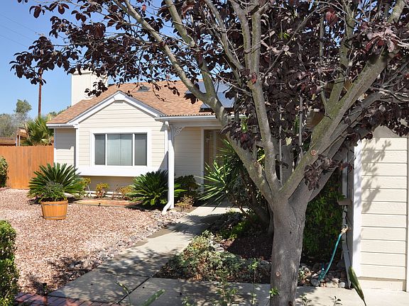 Beautiful home & large property in quiet, pet- and family-friendly neighborhood, next to nature preserve and golf course. Park and San Luis Rey Trail in walking distance. Newly purchased/owned outright solar panels provide 100% of electric needs, including covered hot tub & new $5k central air system which also heats/cools the finished/insulated garage, keeping you warm/cool year round at no cost. Remodeled kitchen w/ maple cabinets, Silestone (quartz) countertops, & stainless steel appliances. Updated baths w/ Corian countertops & new fixtures. Porcelain tile flooring in halls, kitchen and bathrooms. Lots of parking (6 cars/RV). No HOA/Mello Roos! Other unique features - 3rd bedroom is massive, and only needs a new wall installed to make a 4th bedroom, vaulted ceilings, skylight in hall bathroom. Site location - backs up to US Fish & Wildlife reserve (home to 2 species of endangered birds), adjacent to Arrowood Golf Course, fenced back yard, very quiet area (low street traffic), garden style planters with herb and veggie garden, 6 citrus trees outside rear fence, landscaped with drought-tolerant, low-maintenance vegetation. Buyer and/or buyers agent to verify all. Listing courtesy of Ginny Thompson; Realtor BRE#01443459 Cramer Consulting Group 760-237-8288 or ginnyLthompson@gmail.com