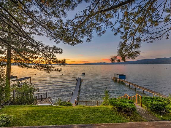 Imagine waking up to Lake Tahoe's crystal blue waters right outside your door in this stunning 2-bedroom, 2.5-bathroom lakefront home. Floor-to-ceiling windows flood the living room and primary bedroom with jaw-dropping views of the lake and Sierra peaks, turning every moment into a postcard. Recently remodeled to feel like a custom retreat, this townhome blends perfectly with its surroundings, boasting a sleek kitchen with a lot of countertop room for morning pancakes or happy hour with friends.This lakefront gem shares a private beach and boat dock with just three other homes, giving you exclusive lake access without pesky HOA fees. Sip cocktails on the spacious deck, soaking in sunsets over the water, or paddle out from your shared pier. Just 10 minutes from Heavenly Mountain Resort's epic slopes and South Lake Tahoe's hot dining spots, cool shops, and buzzing nightlife, this home mixes the beautiful Lake Tahoe ambiance with mountain thrills. Perfect for a full-time home or weekend escape