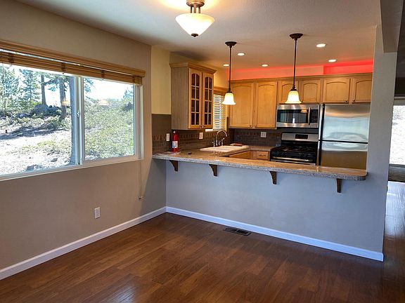 Immaculate and beautifully remodeled end unit with nice wooded setting. Small private deck off one bedroom. Stack washer/dryer, natural gas heating includes thermostatically controlled gas fireplace, recessed light, beautifully tiled shower, mud room for skis, boots, coats, etc... a short walk to gated outdoor pool/spa. Includes water/sewer, refuse dumpsters, cable tv, snow removal on steps, parking and streets. Call Sierra Tahoe Real Estate, Susan Wilson, Property Mgr. for appointment to view. Cell: Seven Seven Five_Eight Four Eight_Six One Four Eight 6 months minimum lease or 1 yr., plus gas and electric, 700 minimum FICO credit score and established long term employment required. Call Susan Wilson Sierra Tahoe Real Estate cell: Seven Seven Five _Eight Four Eight_Six One Four Eight for appointment to view and details.