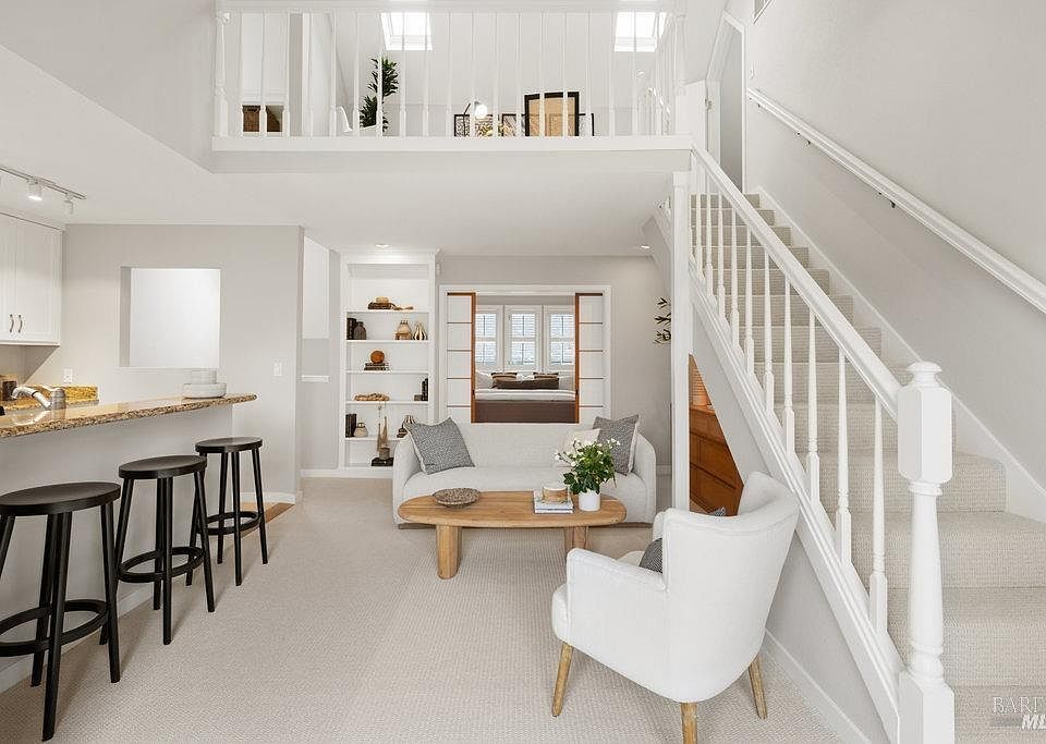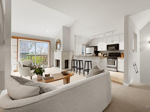 Welcome to 761 Miller Ave, an open and updated 1 BD, 1 BA condo + loft in the coveted Mill Creek Meadows complex. Two levels of comfortable and spacious living feature a private outdoor deck with serene nature views, a cozy fireplace, an updated kitchen and custom design details like Japanese-style wood-and-screen sliding doors. The bedroom enjoys a walk-in closet and an ensuite bathroom that enjoys a laundry closet with stacked washer & dryer, window, and plenty of counter space. Upstairs, the loft area features multiple skylights, a room perfect for office or daybed, and another walk-in closet for all your storage needs. A dedicated, detached one-car garage makes coming home easy, and the outdoor pool & spa make it hard to want to leave. When you do head out, the picturesque bay-front hiking/biking path between Mill Valley and Sausalito is right outside! Superbly located, with access to Tam Junction and downtown Mill Valley, the 101, and loads of trails and parks. This condo offers the feeling of vacation, all year round.