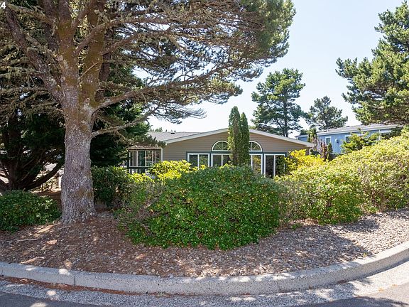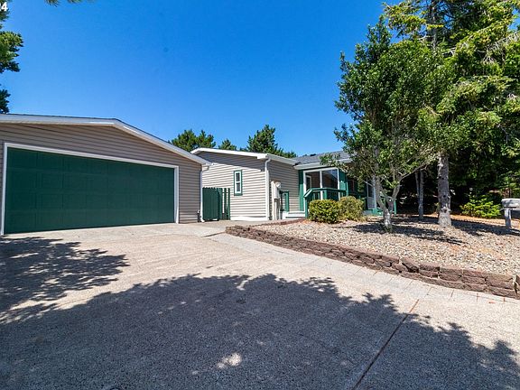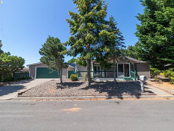 Beautifully maintained 2 bedroom 2 bath home with so much more on a large corner lot with vegetation for added privacy. Spacious tiled sun room glass surround for added light, two ceiling fans to keep the air flowing. Great room with laminate flooring throughout except for bedrooms. Tiled kitchen counters, whirlpool stove, dishwasher w/hidden panels, bar counter with glassed front cabinets facing dining area. Roof approximately 3-4 years old, Plumbing has been replaced, vinyl siding with vinyl wrap, freshly painted inside. Outside is pet friendly all fenced, w/ doggy door off laundry room, decorative brink patio, covered back deck for entertaining along with pathway to oversized 25x25 garage. Minutes to Florence Links golf course, the beach, shopping and all else Florence has to offer.