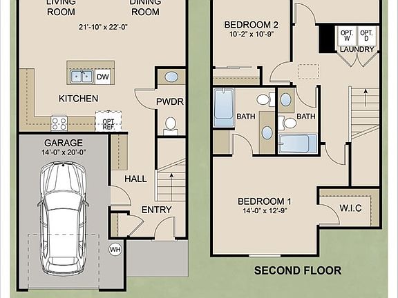 The Sierra, our 1358 Sq.ft. Townhome featuring 3 bedrooms and 2.5 baths with an open concept design. Photos are renderings of a model.