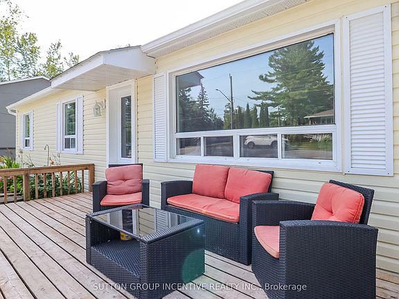 Check Out This Truly Spectacular And Fully Detach 1500 Sq Ft Bungalow With A Detached Single Car Garage, And A Backyard Garden Shed, That Is Ideally Located & Situated On A Very Quiet Street, Just A Short Walking Distance To The Public School, Lake Simcoe, Walking Trails, The Beach, And A Nearby Convenience Store & Gas Bar, And Also Within A Short Driving Distance To Shopping, And All Of Your Major Amenities. Featuring An Extra Large In-Town Lot That Measures 82' X 211' That Will Easily Accommodate A Large Private Backyard In-Ground Pool, This Property Also Directly Backs Onto A Mature Forest Like Setting Of Greenbelt E.P Lands For Guaranteed Privacy Plus And Tranquility That No One Can Ever Build On. An Extra Large And Freshly Surfaced Circular Driveway With A Generous Amount Of Parking That Will Accommodate At Least 6 To 8 Cars, A Relaxing Front Deck Porch Sitting Area That Measures 8 1/2 ft. X 20 ft., A Backyard Wooden Deck Patio That Measures 16 Ft. X 23 Ft.. A Large Eat-In Kitchen Area, Forced Air Natural Gas Heating, Central Air Conditioning, Hot Water On Demand, Freshly Painted Throughout, Brand New Asphalt Shingle Roofing On All Three Structures Being: The Home, The Detached Garage, And Also On The Garden Shed, And This Property Also Features A 200 Amp Hydro Service.
