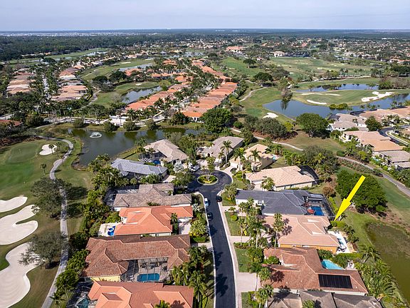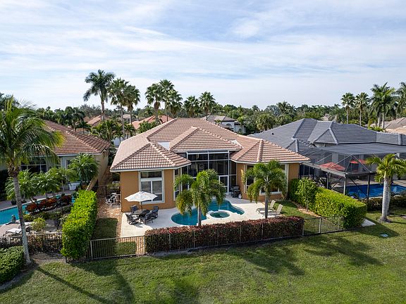 THIS 3BR PLUS DEN 3BA HOME UPGRADES INCLUDE A 2024 ROOF WITH TRANSFERABLE WARRANTY AND HURRICANE PROTECTION WITH ACCORDION SHUTTERS. STEP INSIDE TO DISCOVER HIGH CEILINGS, MARBLE FLOORS, BRIGHT NATURAL LIGHT STREAMING THRU LARGE WINDOWS AND SPACIOUS LIVING AND DINING AREAS. KITCHEN HAS BEEN UPDATED WITH WHITE QUARTZ COUNTERS, TILE BACKSPLASH AND S/S APPLIANCES INCLUDING DOUBLE OVENS(EXCLUDES MICROWAVE/COOKTOP). THE LARGE PRIMARY SUITE FEATURES TWO WALK-IN CLOSETS WITH CUSTOM BUILT INS AND THE PRIMARY BATHROOM HAS BEEN UPDATED WITH WHITE QUARTZ COUNTERS, WHITE CABINETRY, STEP-IN SHOWER AND DUAL SINKS. THE OFFICE/DEN FEATURES A HAND-CRAFTED STYLISH WOOD BUILT-IN. UPGRADES INCLUDE REMOTE-CONTROLLED SHADES, A TANK-LESS GAS WATER HEATER, 2015 AC'S, LANDSCAPING WATER COMES FROM THE LAKE. THERE IS A PARTIALLY SCREENED PATIO OFFERING COMFORTABLE BUG-FREE EXTERIOR DINING. THE BACK YARD LANDSCAPING HAS BEEN REPLACED AND OFFERS PLENTY OF ROOM FOR DINING AND LOUNGING AROUND THE HEATED POOL AND SPA WITH POOL SETTINGS EASILY ACCESSED THRU AN APP. MONTE VERDE HAS THE ADVANTAGE OF BEING JUST A QUICK GOLF CART DRIVE TO AND FROM THE MAIN CLUB.