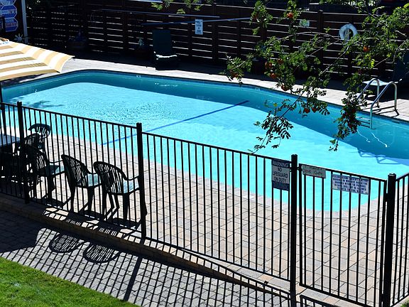 The complex has a private pool, hot tub, and private lakefront space with a private dock and easy on site parking.