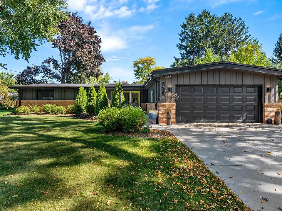 Gorgeous, updated Mid-Century Modern in Fox Point. Vaulted ceilings & open concept w/5 bed, 3 full baths, & over 3K sq ft of space. Living Room has great 3-sided natural fireplace. Dining room features massive picture windows. Sophisticated kitchen w/ quartz counters, tons of storage, SS appliances, and eat-in dining. New patio slider door opens up from kitchen to backyard patio for easy entertaining. First-floor wing w/3 bedrooms, brand new Renewal By Anderson windows, and large Carrara-marbled full bath w/double sinks. Additional first-floor full bath/laundry room. Fully finished basement w/ lovely family room & egress windows, 2 additional bedrooms, and huge full bathroom. Fabulous fully-fenced yard w/professional landscaping w/native plants for bird lovers. Too many updates to list!
