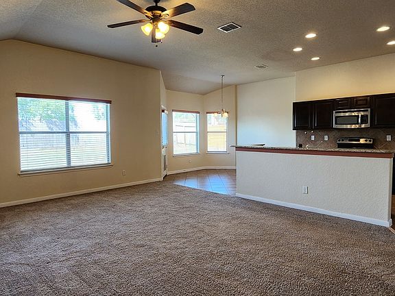 PRICE REDUCTION!! This home is ready for your own touch and immediate move-in. Spacious one-story, 3 bed/2 bath, 1,544 sqft of living space with an open floorplan. Art niche at entry. Breakfast bar opens to living room. Cozy dining area with patio door leading to privacy fenced backyard. Open lot behind property and no direct rear neighbors. Huge owner's suite with large walk-in closet and full bath hosting a separate shower/tub and double vanity. Garage door opener (2022); A/C compressor (2021); Active termite contract (2023); Roof replaced (2016); Water softener (owned). Near schools and shopping. Minutes from Fort Sam Houston and Randolph Air Base. Easy access highway IH-10 and FM 78.