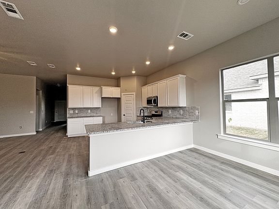 This plan features a captivating brick exterior with a stone entryway and dormer windows that create visual appeal. Inside, 10-foot ceilings create a grand entryway that leads into an open concept floor plan. A large kitchen complete with a spacious peninsula, creates the perfect area to entertain family and friends. Homeowners will also delight in a secluded master suite and bathroom complete with a garden tub, his and hers vanities and a large walk-in closet.