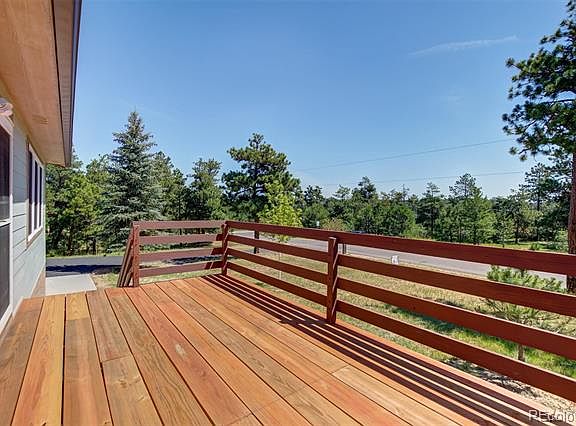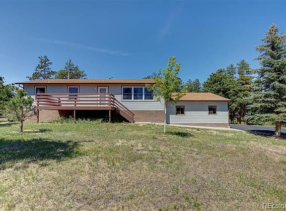 OPEN HOUSE SAT 11:00 to 3:00 (7/27) * Lowest Priced House in the entire Community provides GREAT Entry-Level Opportunity to this highly popular custom home area near the Bear Dance Golf Course! * 4 Bedrooms 2 Full Baths and a nice Flat 1-Acre LOT with Soaring Ponderosa Pines. Great usuable land! * Newer super durable Hardy Plank Cement Siding. Have New 5-Year Roof Certification from Licensed Roofer. Brand new 12x16 Back Deck completed June 2019 WITH a County Building Permit. 10x20 Front Deck has New Floor Boards! * Oversized 2-car garage will fit those large pickup trucks (26'2 deep x 24'10 wide--outdoor measurements). Lower Level WALKOUT to the back yard. * County Maintained Paved Road and paved driveway. Corner lot---plenty of room in the backyard for your RV (dirt driveway at back of lot). * Public water, natural gas, and Thrive Broadband is expected to install High-Speed Internet Service on this street soon (cable hookups are ready to go!) * Approx. 1-mile from I-25 *