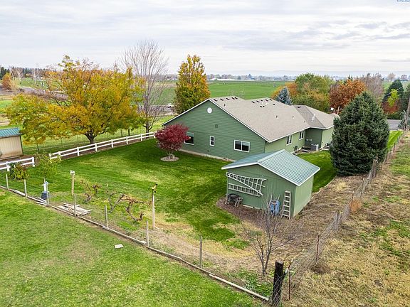 MLS# 288876 Welcome to this delightful one-level home nestled on a spacious 0.74-acre rural lot in Sunnyside. Surrounded by classic white fencing and irrigated pasture, this property offers a peaceful lifestyle with room to roam and grow.Inside, you'll find 3 bedrooms and 2 bathrooms, an open-concept living area with vaulted ceilings, and a versatile bonus room perfect for formal dining, a second family room, or a home office. The kitchen and living spaces flow seamlessly, creating a warm and welcoming atmosphere.The large master suite features a newly tiled walk-in shower, double sinks, and a private toilet room for added comfort. A separate laundry room includes a utility sink and ample cabinetry, while the garage boasts a framed-in “Costco pantry” for extra storage and a convenient lawn mower garage door.Step outside to enjoy territorial views from the beautifully landscaped backyard, complete with a garden area, large storage shed, and paved driveway with plenty of parking.This property combines country charm with modern convenience—ideal for those seeking space, serenity, and functionality. Peaceful country living, yet close to town!