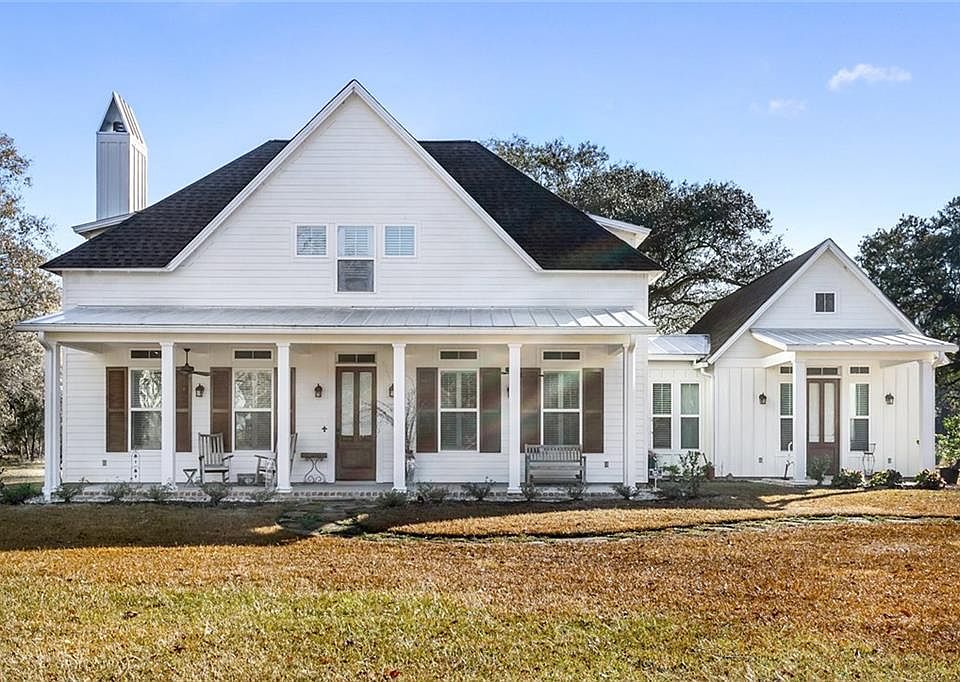 This stunning Mike Piazza designed 3 BR farmhouse situated on 6 acres is an entertainerâs dream! Only 2 yrs young, this open floor plan has a spacious kitchen with reverse osmosis water system, granite counter tops, & ss appliances. Formal dining room & breakfast area! Separate master suite downstairs with office nook, screened porch & 2 additional BR upstairs. Store all of your fun in the 2 car garage + golf cart & 356 sqft workshop! Plans available for future pond & plenty of room for guest suite or pool.