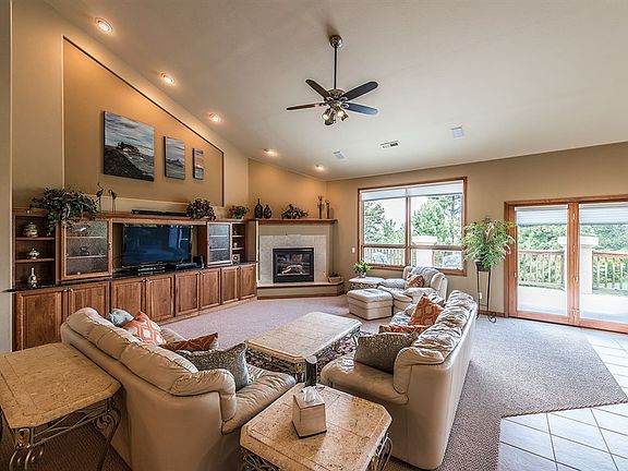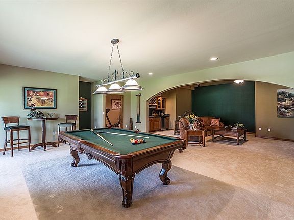 Amazing 5,209 finished square foot ranch home in prestigious Sterling Pointe! The home showcases an enormous great room with 16 ft vaulted ceilings, mountain views, in wall speakers, fireplace and access to the spacious deck. The updated chefs dream kitchen features cherry cabinets, slab granite countertops, stainless steel appliances, 2 pantries, 16 foot vaulted ceilings and open to both the great room and formal dining room. The over 600 square foot main floor master suite features a double sided fireplace, relaxing sitting area and private access to the spacious deck where you are sure to enjoy the serenity of mother nature. The finished walk out lower level boasts 2 additional bedrooms, full bathroom, media room with wet bar, rec room, exercise room, wine cellar and a relaxing sauna.