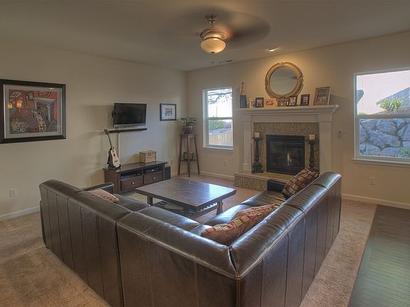 Beautiful DR Horton Cambridge floor plan provides function & maximizes living space. Main floor offers open concept living w/continuous hardwood floors. Oversized dining room. Living room w/gas fireplace. Half bath. Open kitchen w/island, granite slab countertops, walk-in pantry & upgraded appliances and lighting. Upstairs hosts 4 bedrooms, w/master 5pc en suite overlooking back yard. Large front bonus room w/door. Rooms have upgraded Hampton Bay ceiling fans. All new carpet. 2nd floor laundry.