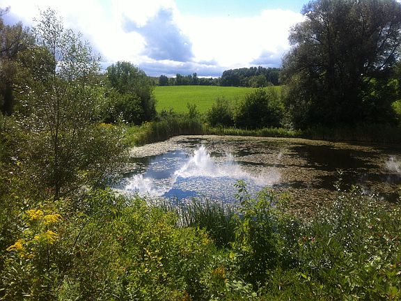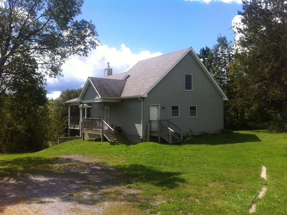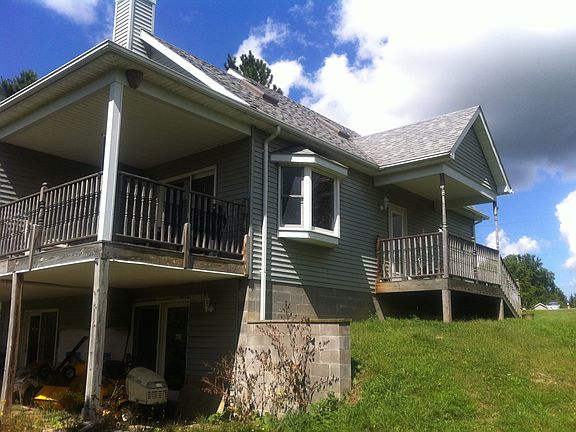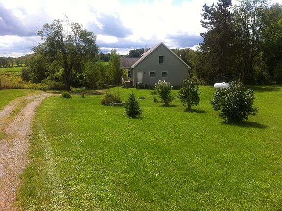 A unique retirement paradise or starter home for a young couple with plenty of room to add another bedroom and even another bathroom. With wonderful peaceful, serene, valley/hill views, wildlife, three stocked ponds year round stream and separate leveled camper/trailer site. One large bedroom with full bath upstairs with small balcony overlooking great room and large walk in closet. Small bedroom with full bathroom/laundry room. Kitchen includes excellent appliances, and beautiful custom maple cabinets with large separate pantry room. Both entry areas (Side and front) include plenty of space for hanging coats etc. Side has small deck. All steps are all wide with very low rise built for an elderly lady with bad knees. Basement has large dry-walled room with second kitchen and is wired for 220. Was used for catering business. Also has all hookups needed to install another bathroom. Plenty of storage area and is dry so can even be easily remodeled to create another bedroom or two. Two large walk out french glass doors make basement seem like just another level.