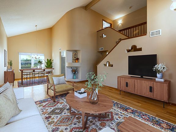 This beautifully updated home is in a prime location, just a short walk to La Cueva High School. Featuring 3 bedrooms, 2.5 baths, and a 2-car garage, this home offers a gourmet kitchen with double built-in ovens (top one is convection), a 5-burner gas cooktop, and a Vent-a-hood with outside exhaust. Energy-efficient windows and a sliding door were replaced in 2014 (low-emission, tinted). The first floor boasts engineered wood flooring, custom built-ins, and opens to a covered back patio with an outdoor grill--perfect for entertaining. Enjoy the cozy gas-log fireplace in the den during winter and refrigerated air in the summer. The spacious primary suite offers a double sink vanity, an extra-large tub with a separate shower, a large walk-in closet, and a private balcony. This is a Must SEE!