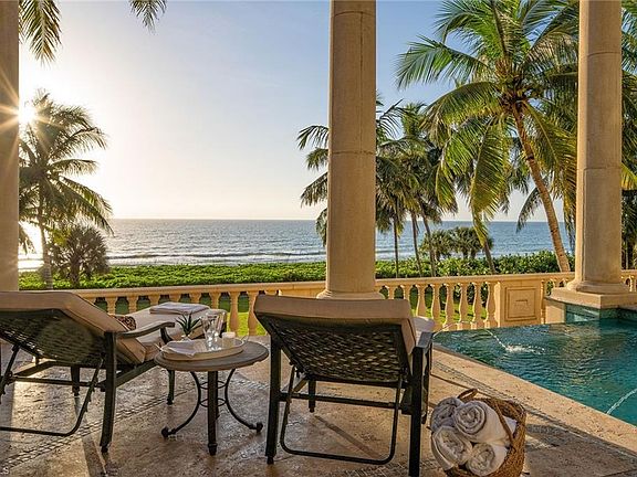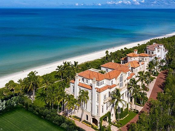 Directly on the sugary sand of the Gulf of Mexico and a short beach walk to the Bay Colony Beach Club, this "Castle by the Sea" is where your dream awaits. Nearly a full acre of beachfront property and situated within the exclusive Strand gates, this is a true opportunity to own a bit of paradise. Masterfully constructed by BCB Homes, this four-story estate captures the view from nearly every space with copious amounts of glass showcasing the turquoise waters beyond. Luxurious bedrooms complete with fireplace for nearly every guest, a master suite with sweeping sunset views and a remarkable outdoor space creates the perfect atmosphere for family and friends to come together and enjoy what Naples has to offer. Custom millwork throughout, soaring ceilings, gourmet kitchen, 4-car garage and multiple balconies with unsurpassable views are just a few details which bring the Castle by the Sea to life. Accessible only after passing through a second electronic security gate, The Strand at Bay Colony offers the ultimate in privacy and exclusivity.
