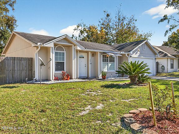 Welcome to this charming 3-bedroom, 2-bath home in the desirable Pilgrim's Trace community! Conveniently located near the shopping, dining, and entertainment options of The Oakleaf Town Center, this home offers both comfort and convenience. Inside, you'll find a spacious open layout with natural light throughout, perfect for everyday living or entertaining guests. The kitchen overlooks the living area, ideal for staying connected while cooking. Step outside to a private backyard featuring mature, fruiting calamondin trees—your own citrus oasis! Don't miss this move-in ready home in a prime location close to schools, parks, and major highways.