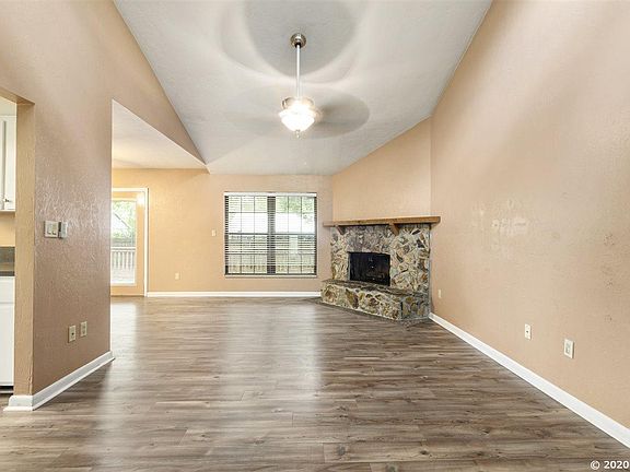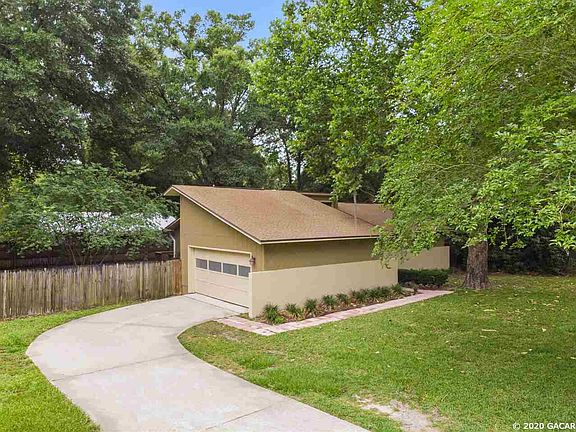 Move in ready immaculate home in Valwood with no HOA! 3 bedrooms with 2 full baths -open concept. Kitchen is open to dining room and family room. Lovely stone fireplace with vaulted ceiling and high windows. House has been freshly painted inside and outside. Floors recently replaced with beautiful laminate. Remodeled master bath includes walk-in shower and large walk-in closet with built-ins. French doors open from the dining room to an open deck overlooking a large fenced back yard. Large 2 car garage with laundry area. Washer and dryer included. HVAC is only 2 years old with programmable thermostat. Fabulous location - minutes to UF, Shands Hospital, VA Hospital and Celebration Pointe. Come have a look and make it your new home!