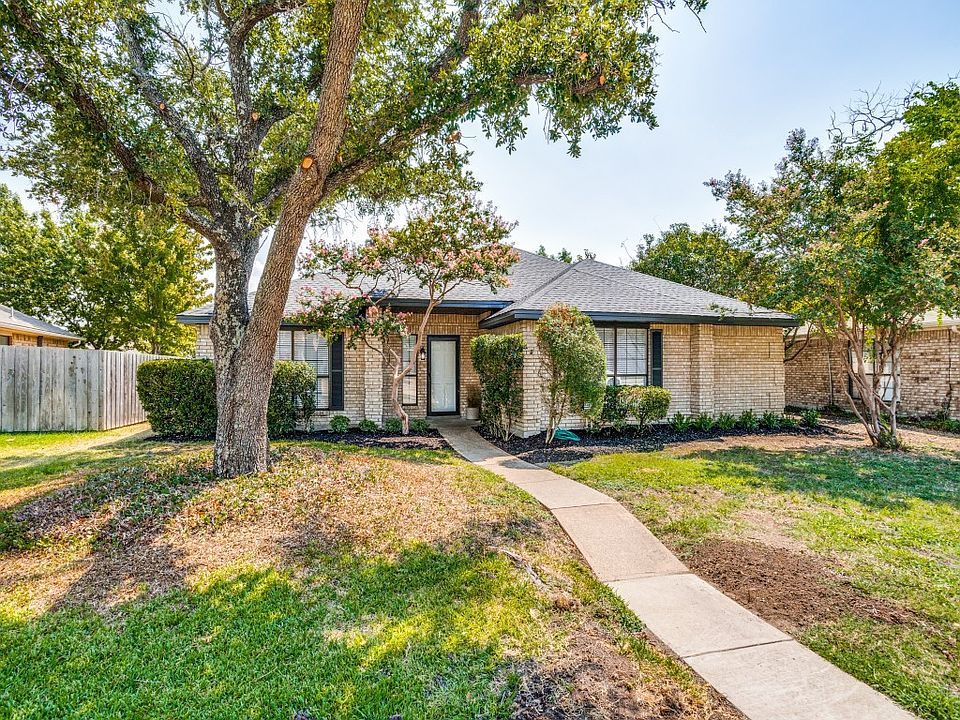 PRICED TO SELL QUICKLY!!! - UPDATED HOME, Everything done to a tee!!! 1 story brick home in Rowlett, easy access to major highways, great community. This beautiful home has the following updates: foundation repair with Lifetime warranty, roof replacement, HVAC hs been restored, all new flooring throughout the home, beautifl neutral paint inside and out, beautiful white quartz countertops in all bathrooms and kitchen, new stainless steel appliances in spacious kitchen, designer backsplash, Master suite has beautiful upgrades including gold fixtures for the modern touch with under mount sinks, Wood burning fireplace with gas starter. Floor plan is outstanding with spacious living room, wood burning fireplace and separate sun room area that can serve as living space or an office. Formal dining area features gorgeous chandelier. Split bedrooms, 2 car garage in rear. New spacious 12x12 pergola covered patio in back, covered porch in front, beautifully landscaped property.