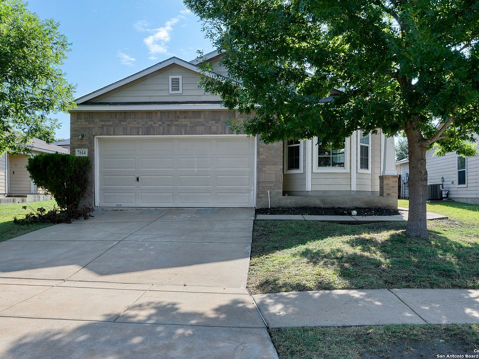 This inviting property features a brick-and-siding exterior with a convenient side entry door. Step inside to find a spacious eat-in kitchen to the left, complete with a smooth surface range, a built-in microwave, and a stylish diagonal tile backsplash. To the right, enjoy a formal dining room and a cozy living area that opens to the backyard-perfect for entertaining or relaxing. The primary bedroom is tucked away at the back of the home and boasts a high ceiling, a walk-in closet, and a full en-suite bathroom with a garden tub/shower combo. Enjoy a small space off the primary perfect for a desk set up or reading nook. Two additional bedrooms are located near a second full bathroom, offering space and comfort. Additional features include a laundry closet, a separate coat closet in the hallway, a two-car garage with an opener, and a private backyard with a full privacy fence.