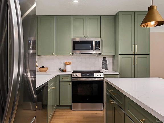 Adorable single family home in Lemon Grove! Completely refreshed with a gorgeous new kitchen with island, new bathrooms, and new vinyl plank flooring. The living room has a cozy fireplace and is open to the kitchen, providing a spacious feel. This home is situated on a quiet cul-de-sac. The lot is pie shaped, creating plenty of space in the back yard for entertaining. Yard is fully fenced and features a lovely patio cover to keep you cool in the summer. Home has solar to help with your energy bills! You won't want to miss this Lemon Grove beauty!