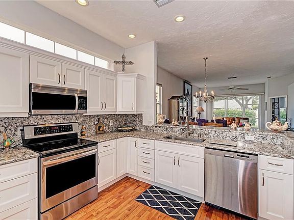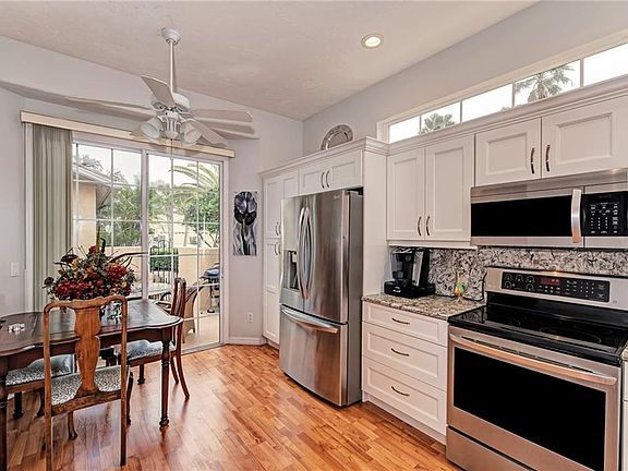 Fabulous villa located in the small and intimate Sarasota community of "The Preserves at Palm Aire" This villa features a large front courtyard, rear screened in lanai, 2 car garage and 2 nice sized bedrooms plus a separate den/study with pocket doors. The kitchen was completely opened and remodeled a few years ago and is just gorgeous.. high-end LG stainless steel appliances, thick quartz counters, custom wood cabinets with top molding, pull outs, soft close drawers and a quality brushed nickel style farmhouse sink and faucet. All flooring is carefree laminate or tile. Master bath has also been refreshed and you'll love the new shower. Smart floorplan.. light, bright and cheery inside. Great storage with walk-in closets, loads of cabinet space and great shelving units in the garage. Lovely and vibrant community with a pool for your use, maintenance free lawn care, lush landscaping and a location that can't be beat. Just moments to the fabulous UTC mall, the new Whole Foods, Fresh Market, fantastic dining options and just 15 minutes to downtown Sarasota and the world famous sugar sand beach of Siesta Key. The optional Palm Aire Country Club is within walking distance. There are two 18 hole golf courses, fitness center, 10 tennis and pickle ball courts, Jr.. Olympic size heated pool and a fun clubhouse with a scrumptious Sunday brunch and other activities throughout the year. Come and live the Florida dream in one of the best cities you could ever find.