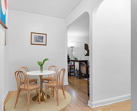 Enjoy the elegance of hardwood floors throughout, high ceilings, and charming archways that add a touch of prewar character. The building itself is beautifully maintained, offering residents a quiet retreat while still being in the heart of the neighborhood.