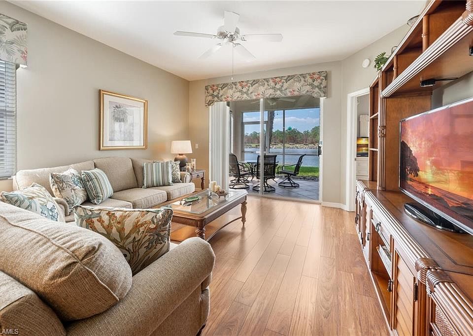 Fabulous two bath two bath with den meticulously maintained Colonnade model with a sensational view to the golf course and lake. Just move in and enjoy this beautifully decorated property with its neutral decor , and enjoy everything sensational Naples Heritage has to offer. Laminate flooring in living area .Granite countertops in kitchen. Championship golf, clubhouse with restaurant and outdoor dining , resort style pool with bar and restaurant, tennis complex, pickleball complex, fitness center with full time instructor, driving range, chipping area, bocce ball. Naples Heritage has it all and so close to downtown Naples and the beaches. This property is completely furnished and ready for the discerning buyer. Just move in and enjoy the view that will win you over. Fitness center in the morning followed by a round of golf before heading to the beach for sunset, Naples and Naples Heritage offers it all !