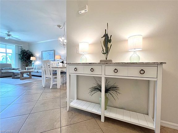 Motivated seller - Condo located in the gated community of Naples Heritage Golf and Country Club with GOLF INCLUDED! This lovely 2 Bedroom / 2 Full Bath condo is located on ground floor (no stairs to climb or elevators to wait for). HVAC & Hot Water Heater are both less than 2.5 years old. Fully furnished home allows new owners to enjoy immediately. Updated tile flooring throughout condo's main living areas: entry, kitchen, baths, dining & living rooms ... Bedrooms have newer neutral carpet. Kitchen has re-faced white cabinets w/under lighting, white granite counter tops, new pantry & built in storage/beverage bar area. Kitchen has breakfast area. Breakfast area & dining room have new light fixtures. Guest BR has Murphy beds - 2 twin beds fold down for guest - size of room allows it to double as office if you would like. Primary BR is very spacious w/ 2 walk in closets (custom shelves & drawers). Primary Bath is updated w/ new double vanity, quartz counter tops, new mirrors & new lighting. Primary shower has been renovated - floor to ceiling tile walls w/ built in niches & tall frameless shower door. Primary bath has linen closet. Guest & primary BR's are split for privacy. Main living room has light/airy coastal feel while looking out to lake, golf course & preserve - gorgeous view. Back lanai is screened in ... extremely tranquil. Naples Heritage is a beautiful landscaped, gated, bundled golf community situated on 550 acres of pristine lakes & preserves. NO waitlist for golf. This active community has an 18 hole gold course, putting green, driving range, renovated clubhouse w/ golf pro shop, resort style pool with cabana, fitness center, tennis courts/pavilion, pickleball courts & bocce courts. Just minutes from downtown & beaches.