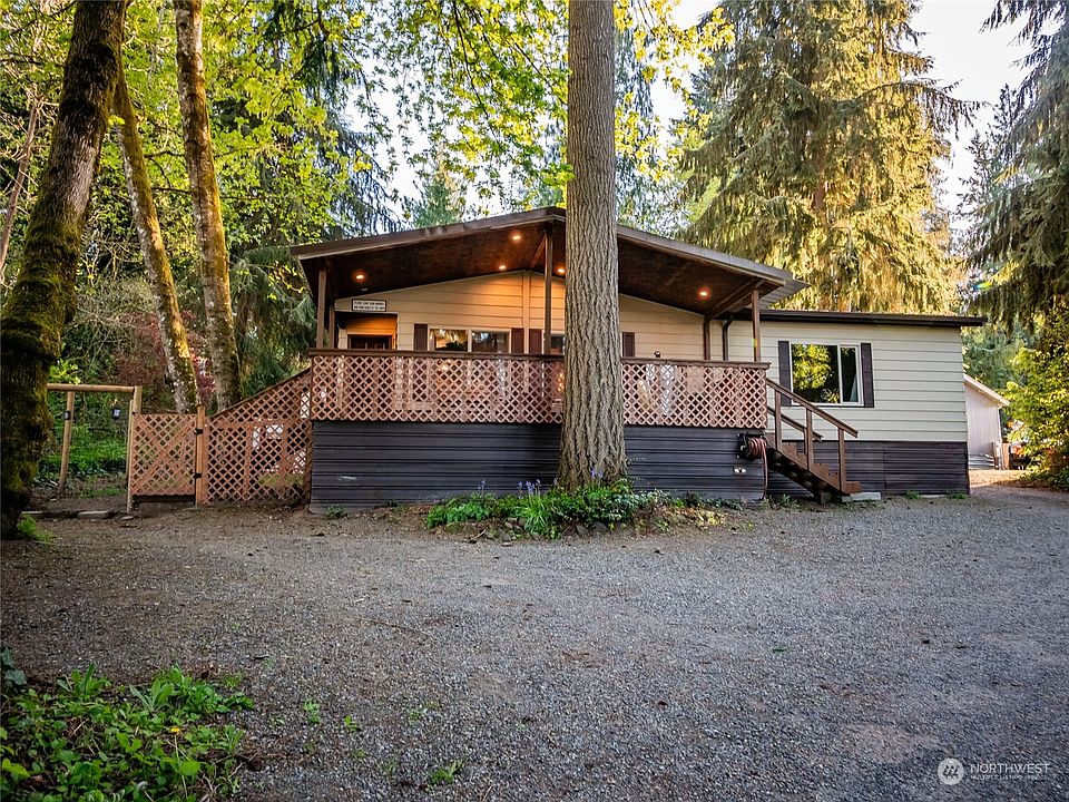 Stunning updated in cabin-style property with breathtaking lake view! Inside upon the upgrades you will find 2 bedrooms and a large den/office. Primary bathroom is spacious with tiled walk-in shower and luxurious water features. Open kitchen with extensive counter space and breakfast bar seating. The elevated lot allows for natural light to flow throughout the home. Much more to see in person. Outside find, a zip line, treehouse, green house, covered carport parking, and a 24x25FT shop w/ power and access to an additional private well. Public lake access end of Fair Oaks and public boat launch access as requested. Minutes to the Lacey Corporate Center and 25 minutes to JBLM DuPont Gate. "Seller offering $5,000 towards buyer's closing costs"