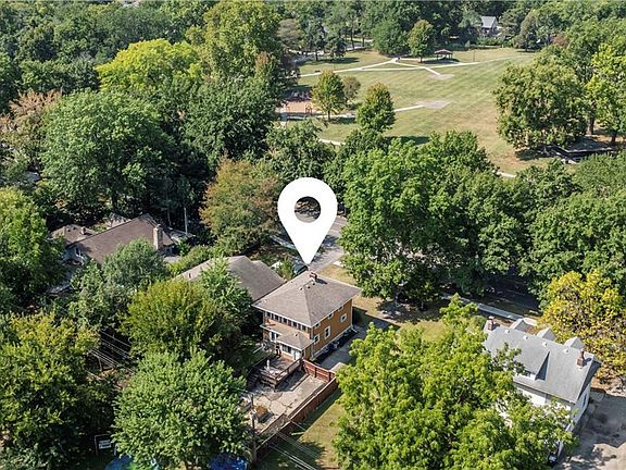 Enjoy the crisp fall weather sitting on the wrap-around porch looking out to the park. Step into this historic 2 story home where hardwood floors flow throughout and natural light fills every room. The formal dining room features a bay window framed by the original built-in surround with inset glass doors—a timeless detail that makes this home special. Living room with a beautiful tiled fireplace and french doors to the front porch. Upstairs, the oversized primary bedroom offers plenty of space to retreat. Outside, a big yard with raised garden beds provides room to play, garden, or relax. Newer windows throughout, newer HVAC, water heater & plumbing! All of this in an unbeatable location—just around the corner from breweries, bakeries, and coffee shops that make Waldo one of Kansas City’s favorite neighborhoods.
